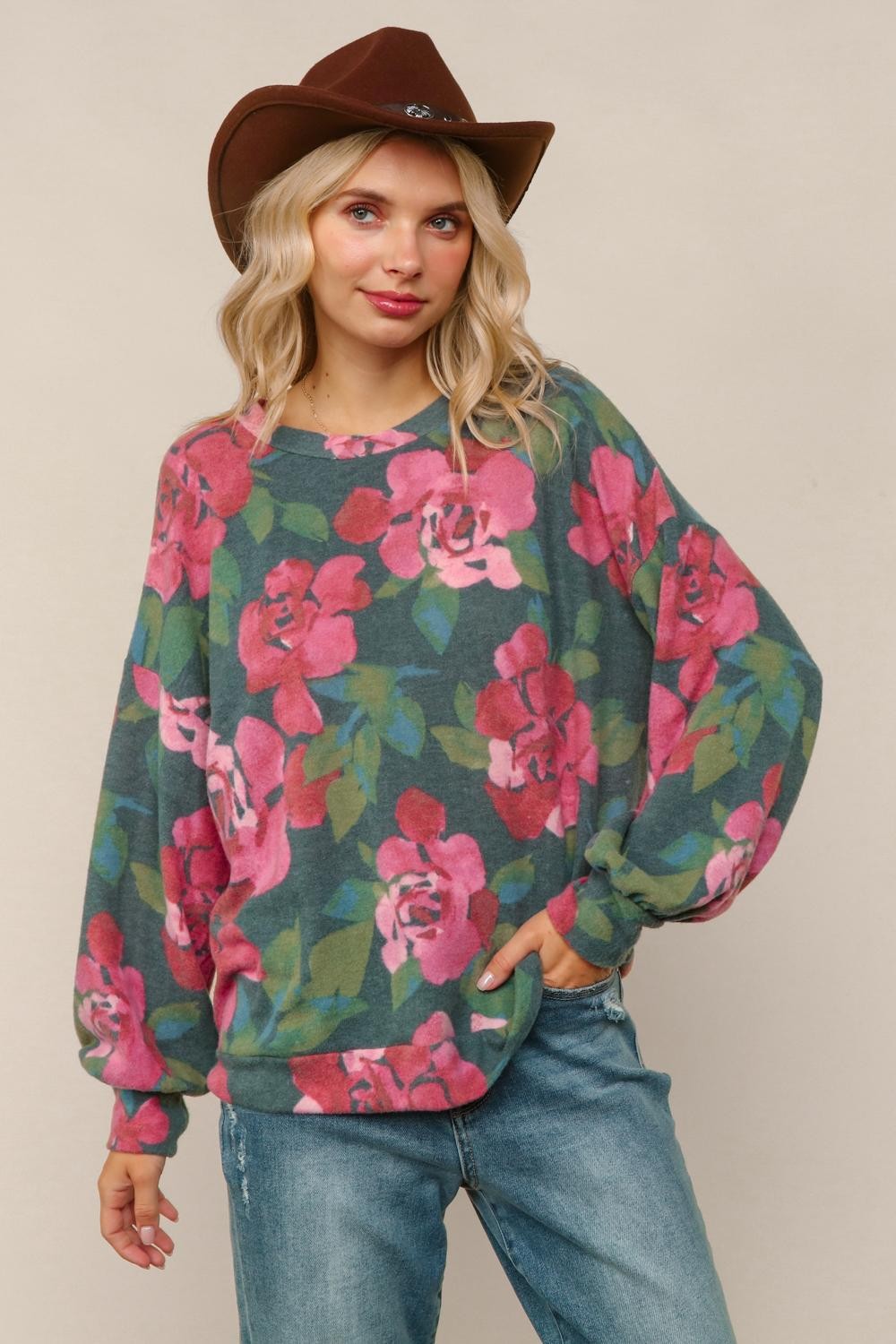 HUNTER GREEN  LOOSE FIT BRUSHED HACCI SOFT SWEATER TOP