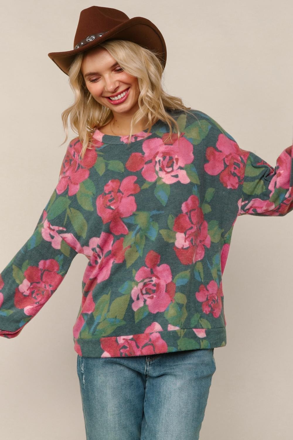 HUNTER GREEN LOOSE FIT BRUSHED HACCI SOFT SWEATER TOP