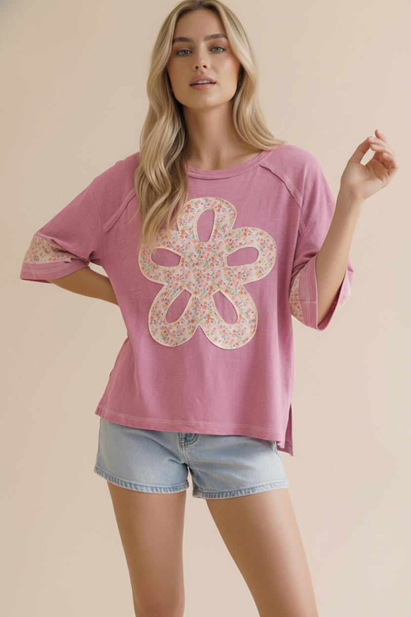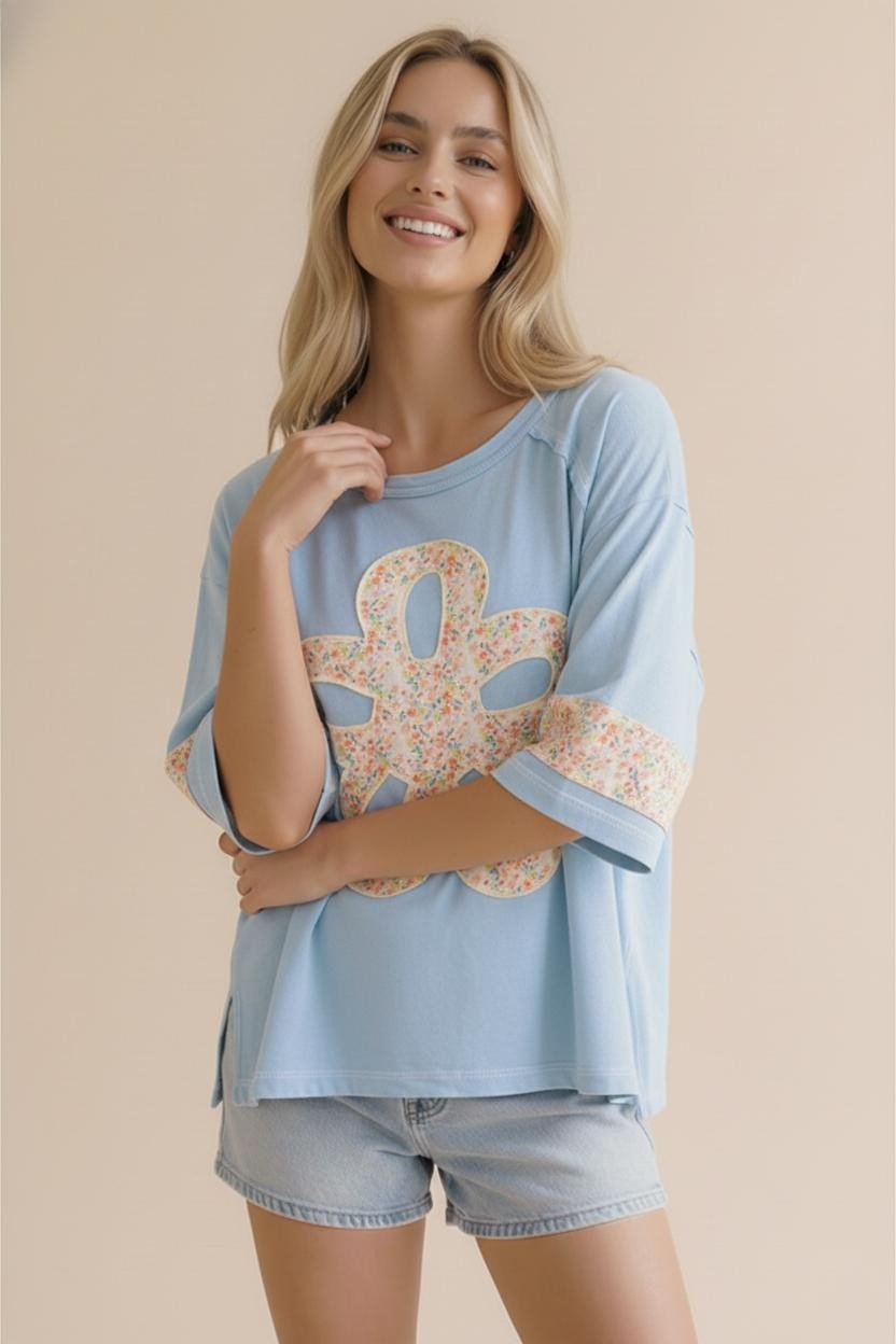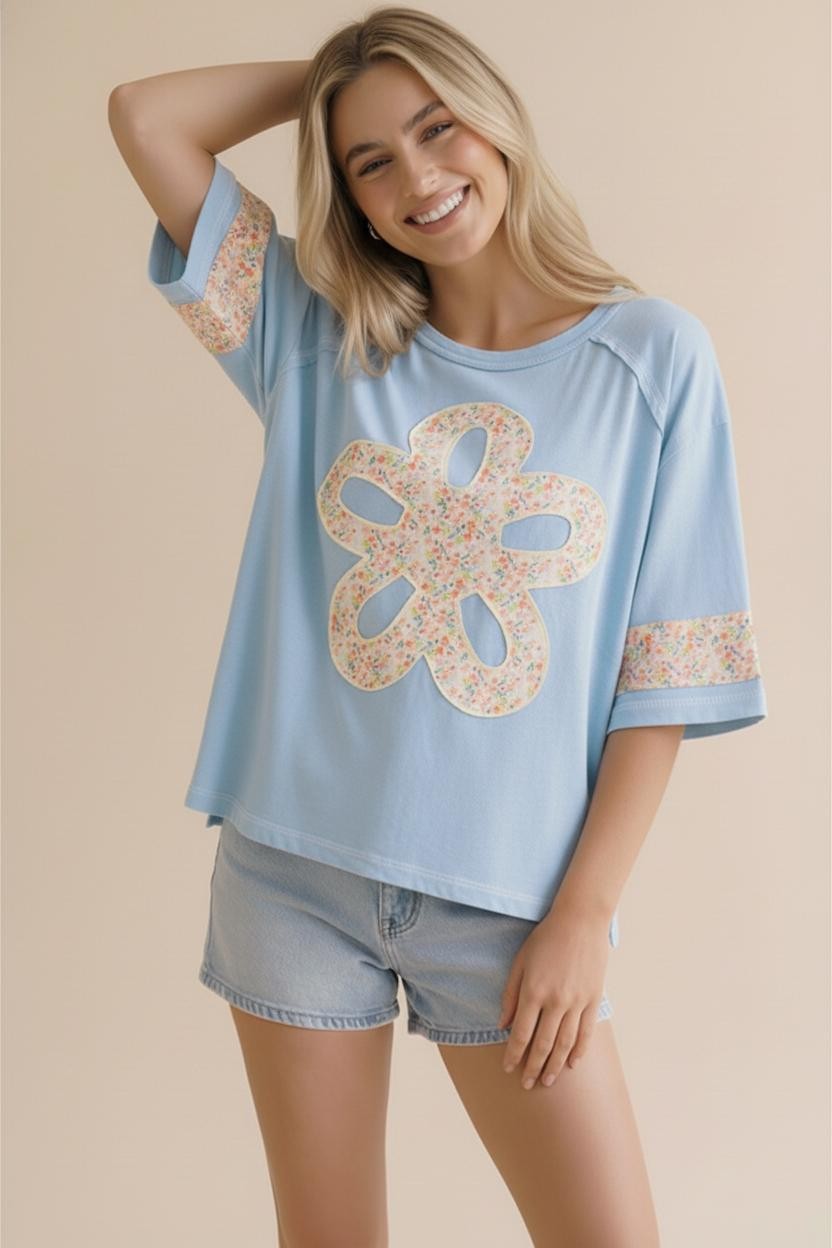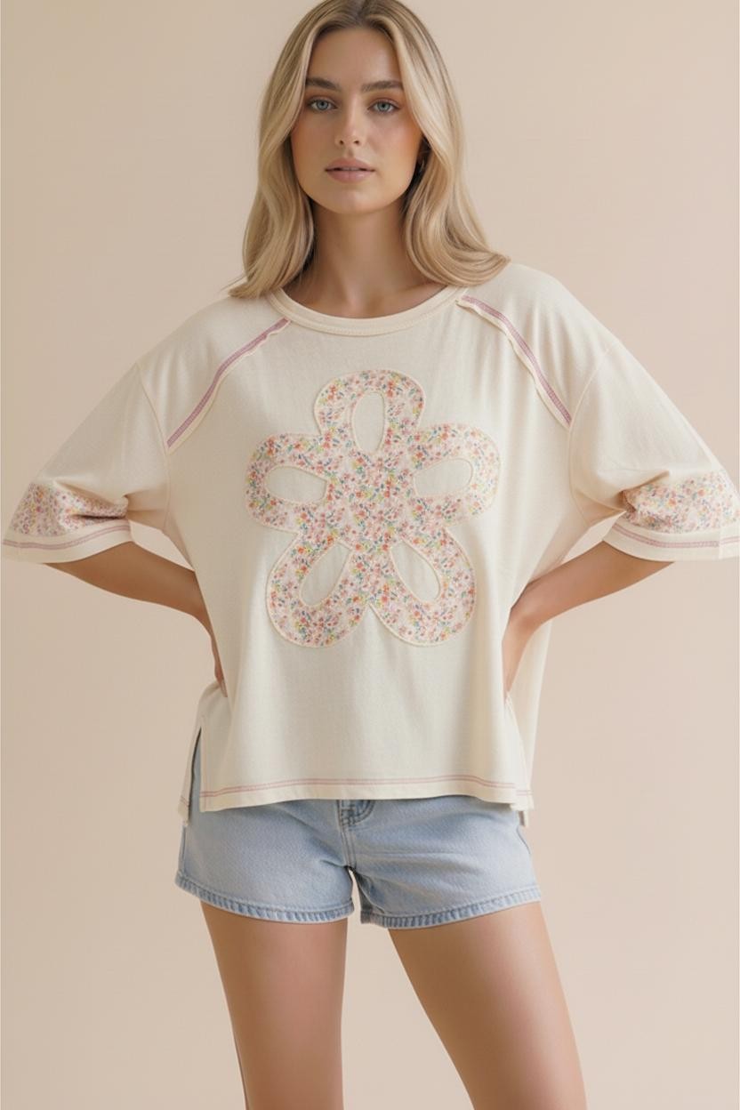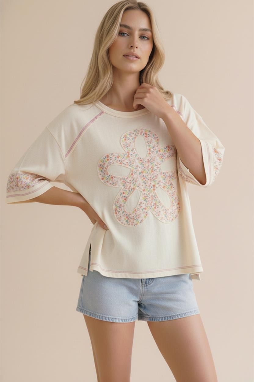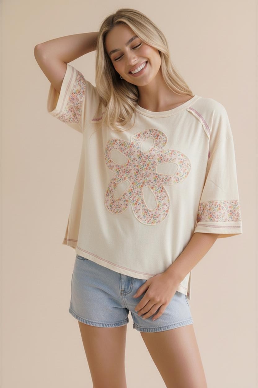 FLOWER PATCH COLOR BLOCK LOOSE FIT TOP
