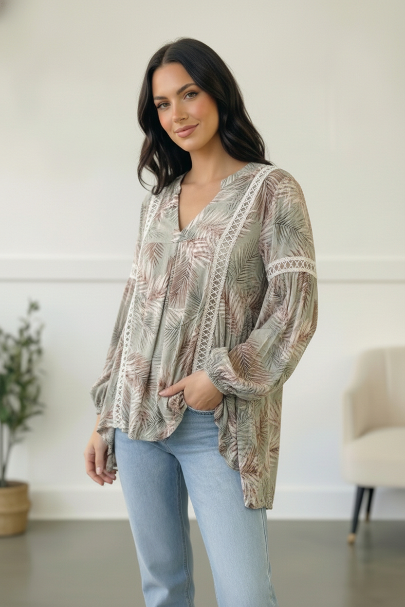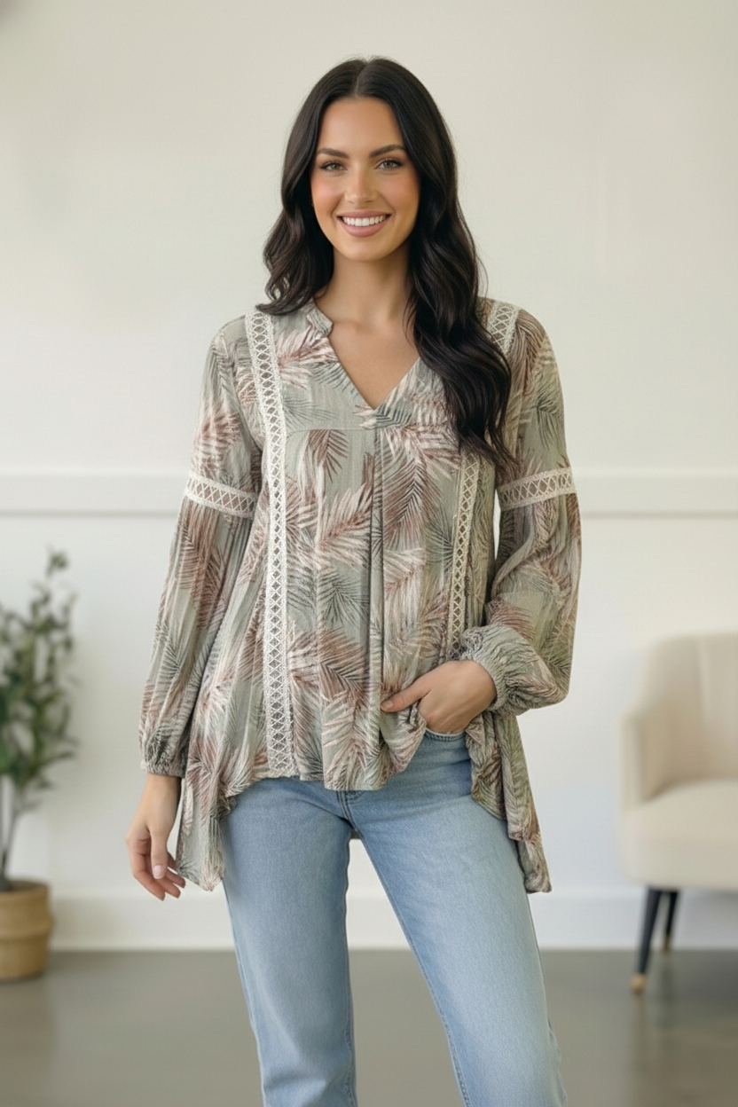Mint Crochet Tropic Print Blouse