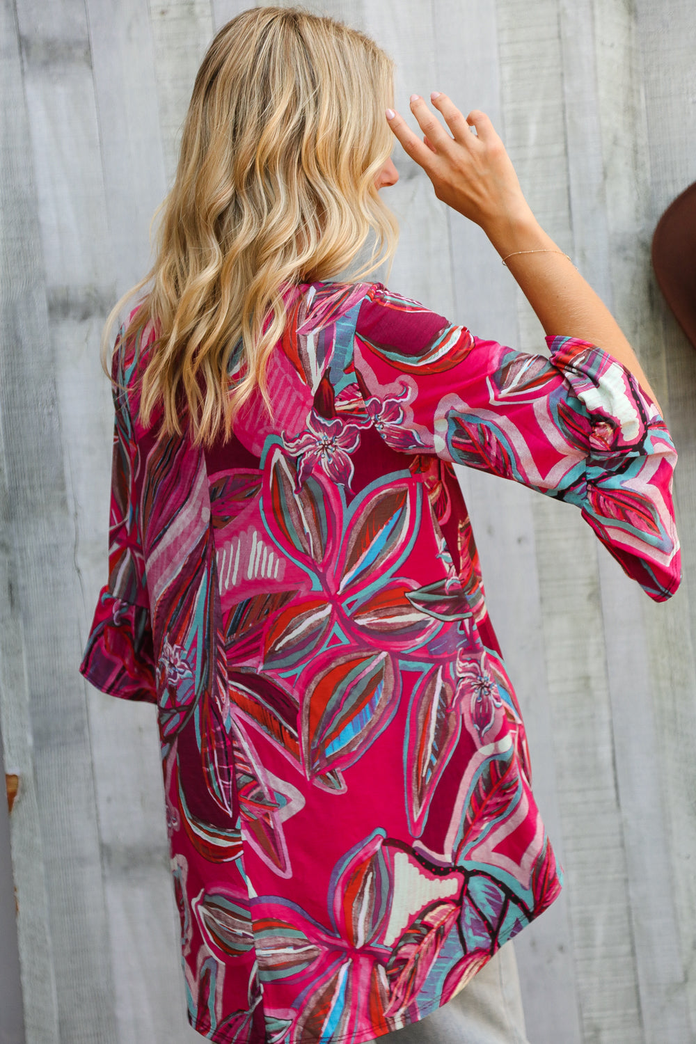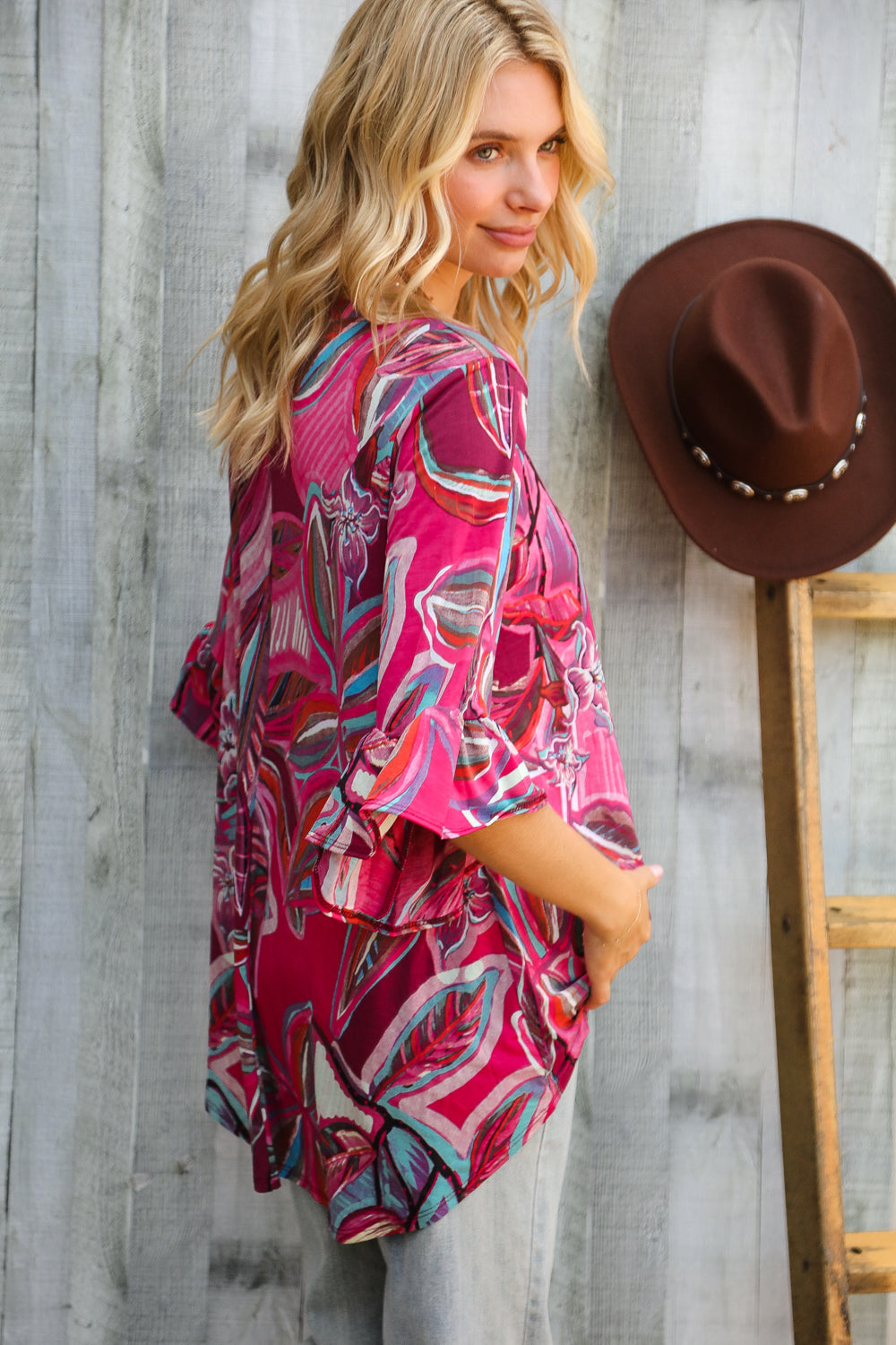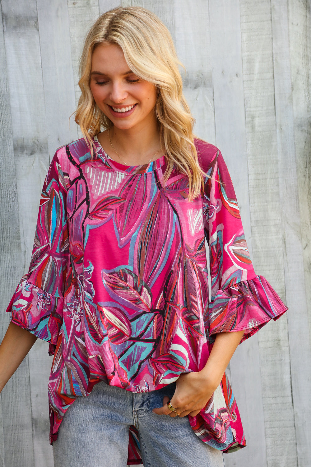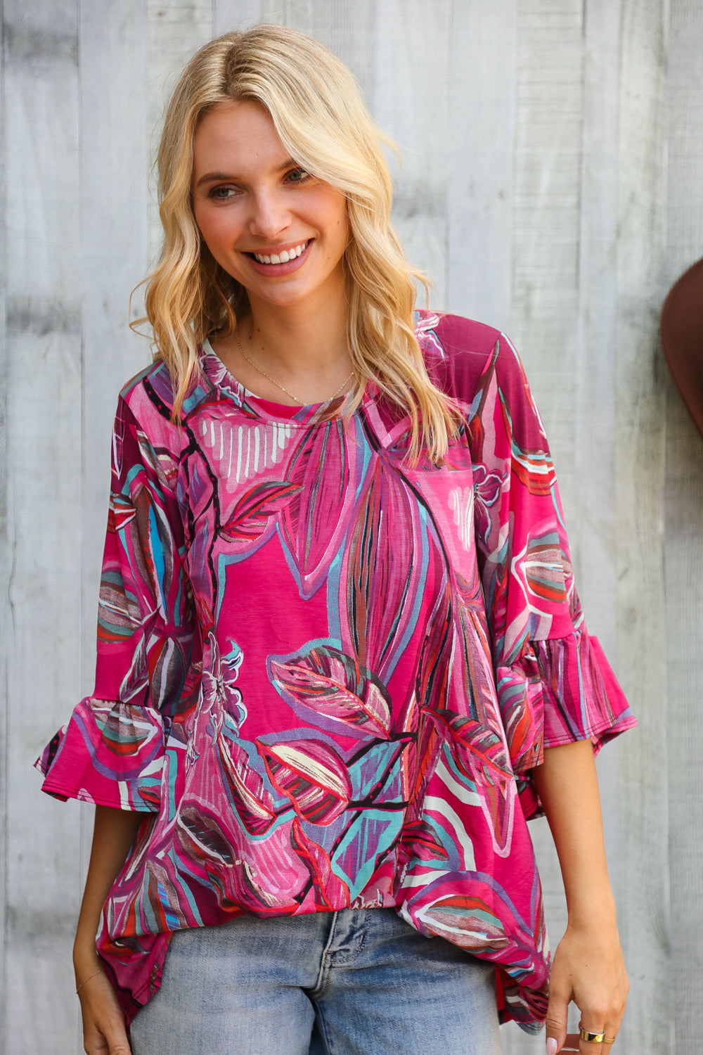 Magenta Floral Bell Sleeve Top ( 4pc)
