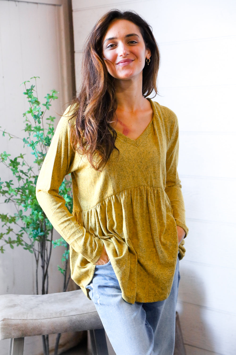 Mustard Hacci Babydoll Top