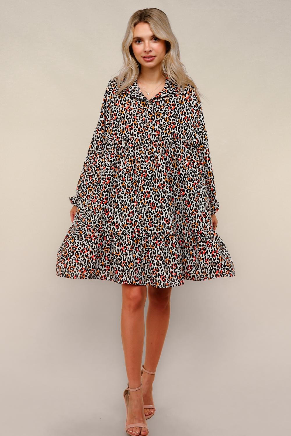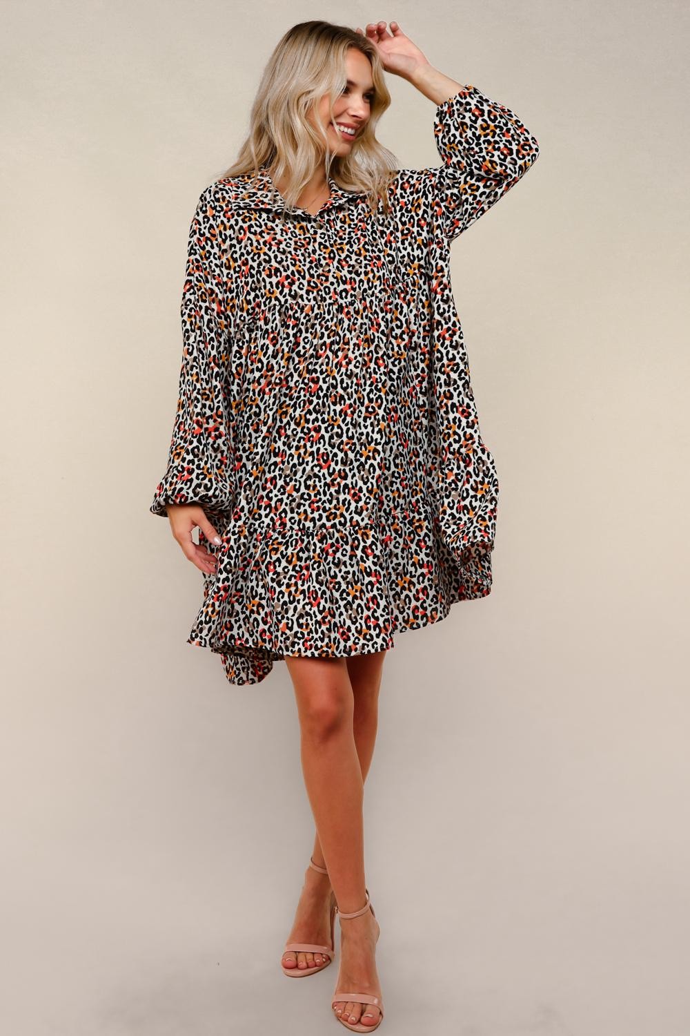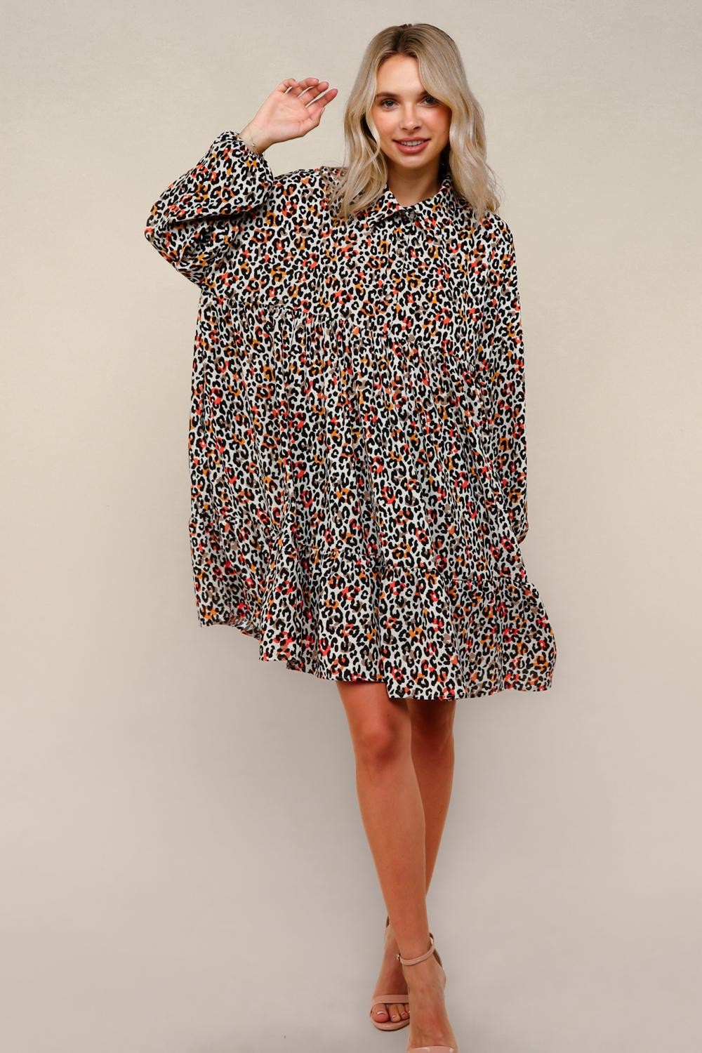PLUS OVERSIZED LEOPARD PRINT WOVEN MIDI DRESS (1XL ONLY)