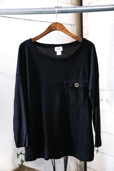 Black Front Pocket Ultra Soft 3/4 Sleeve Top