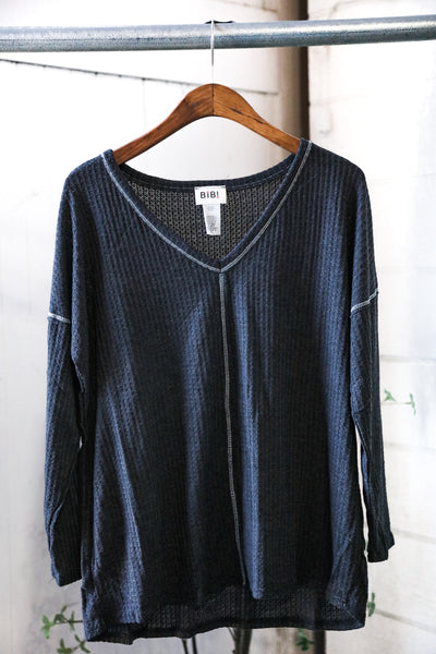 Grey Waffle Reverse Seem V Neck Top (4pc)