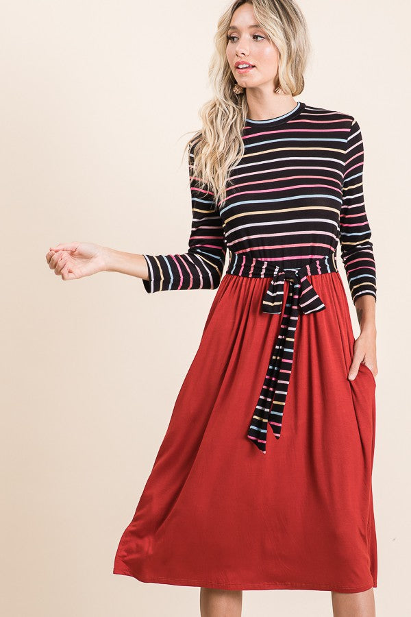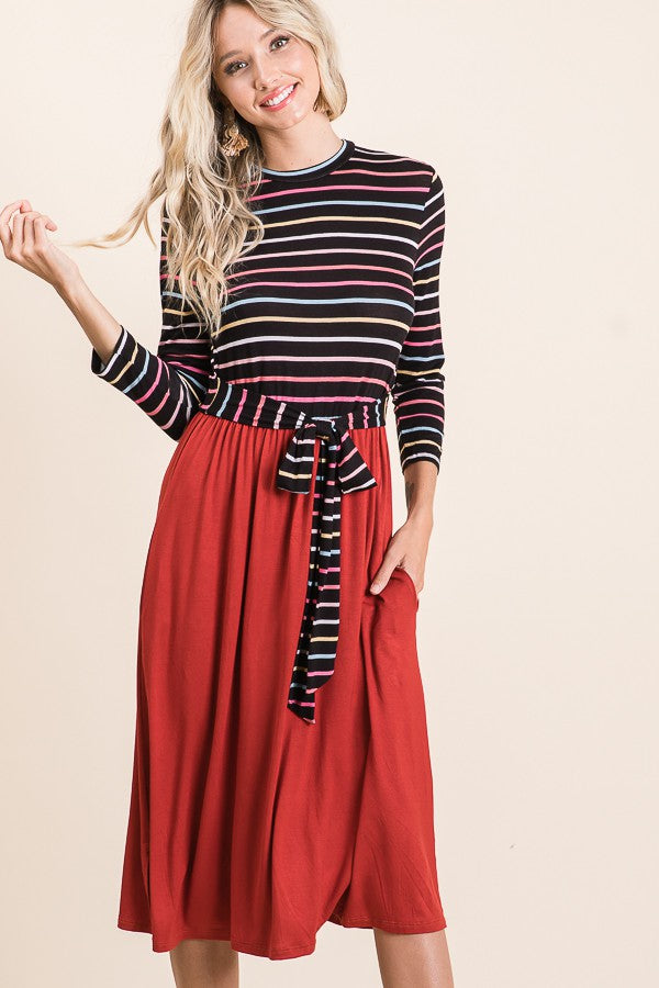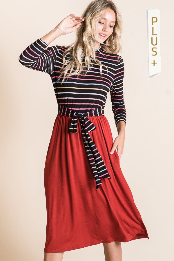 PLUS Rust Modal with Multi Stripe Midi Dress