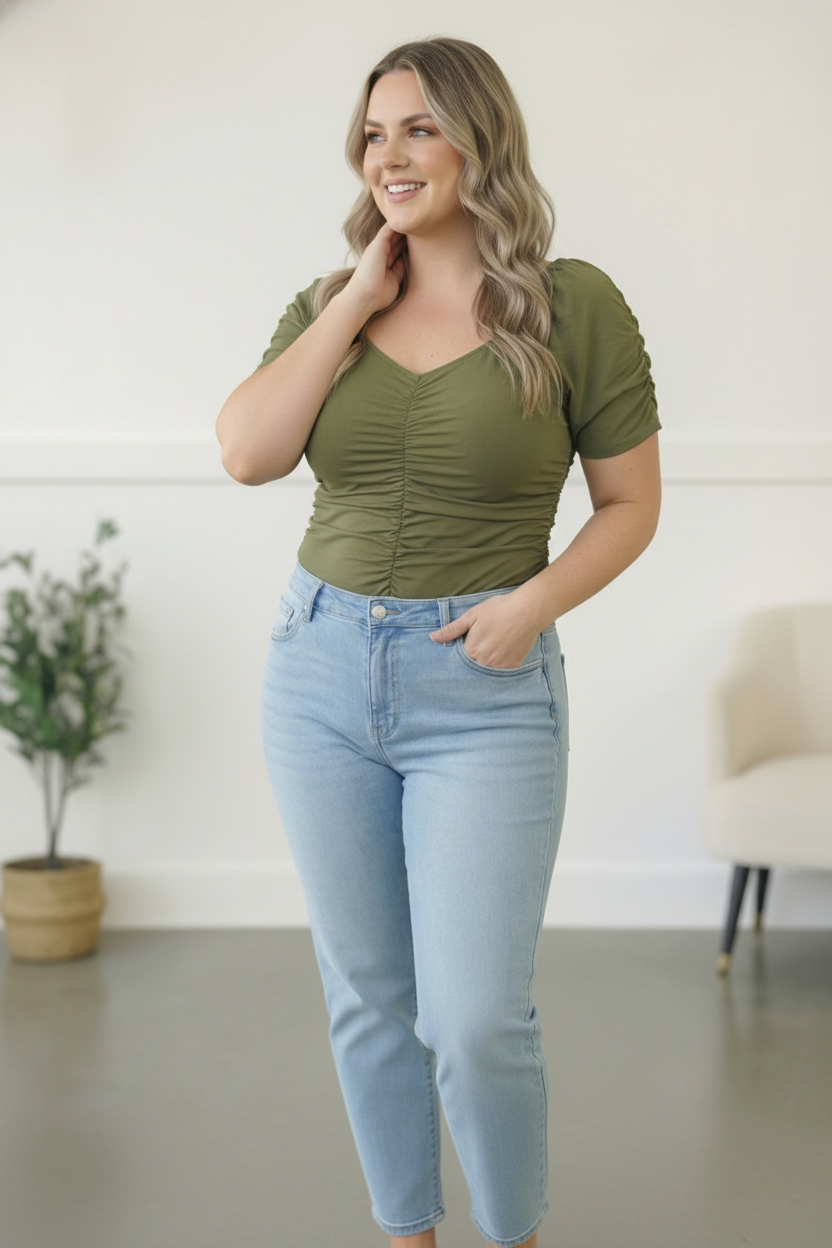 Plus Olive Synch Design bodysuit Top