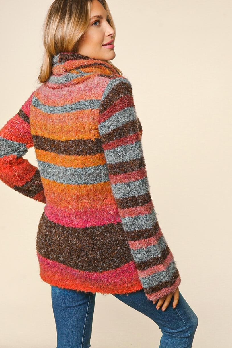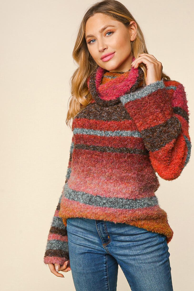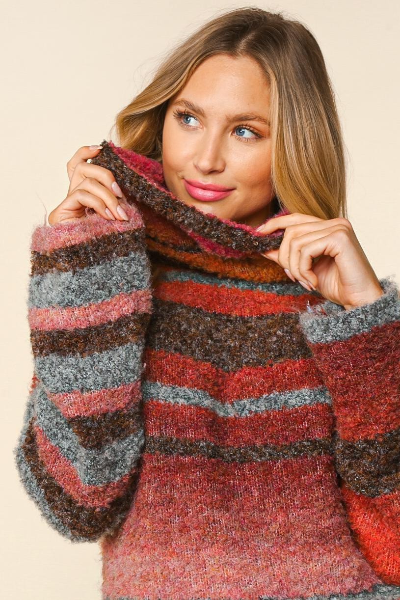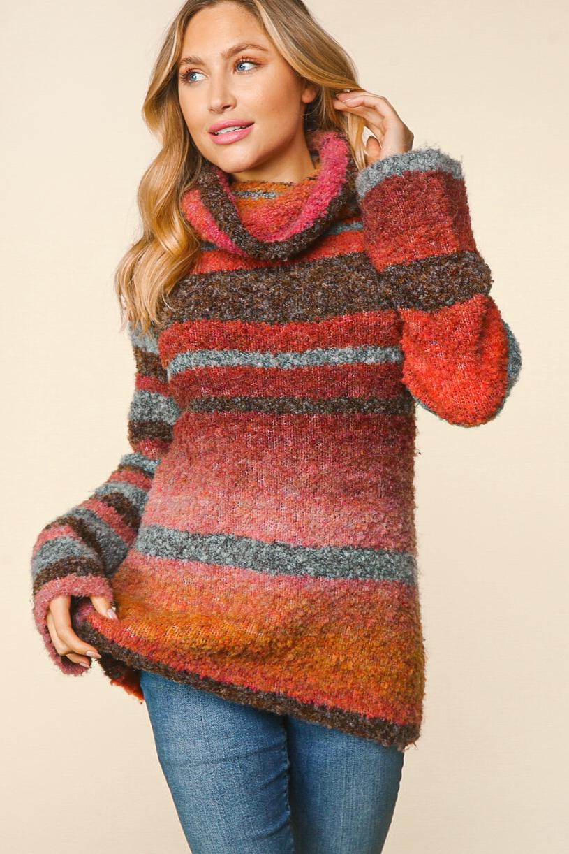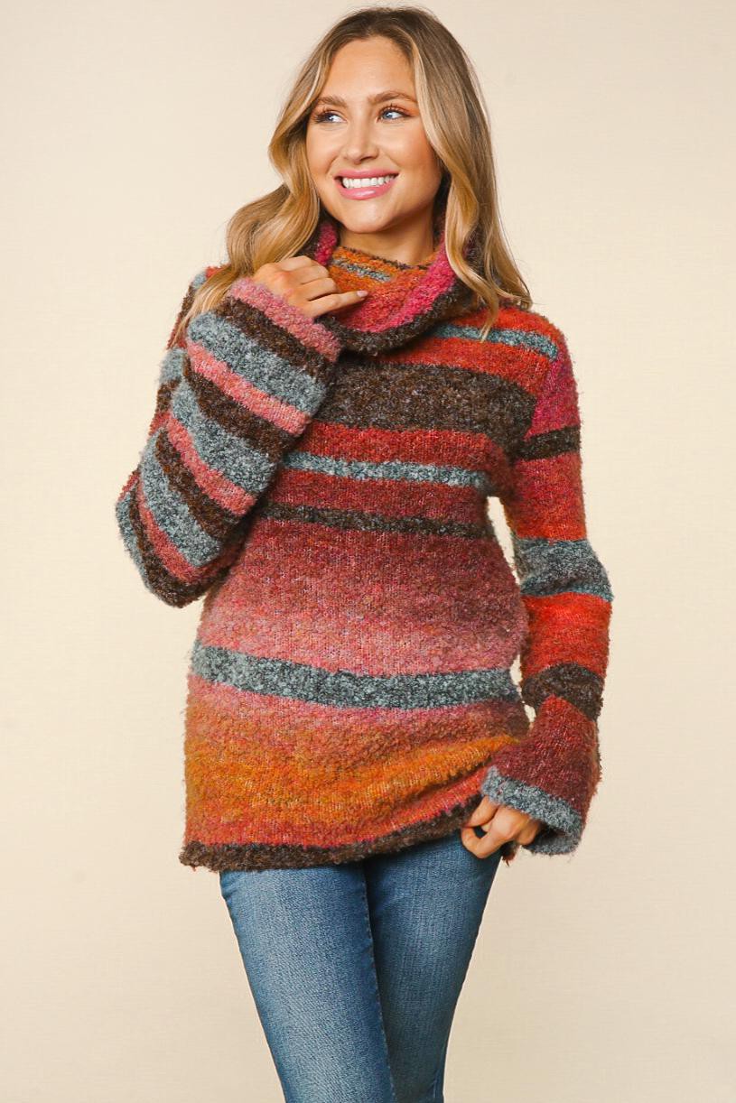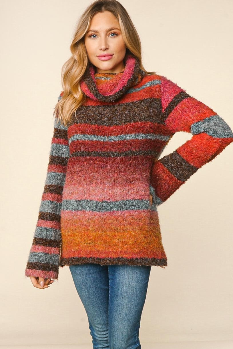 PLUS TURTLE NECK MULTICOLOR STRIPE SWEATER TOP