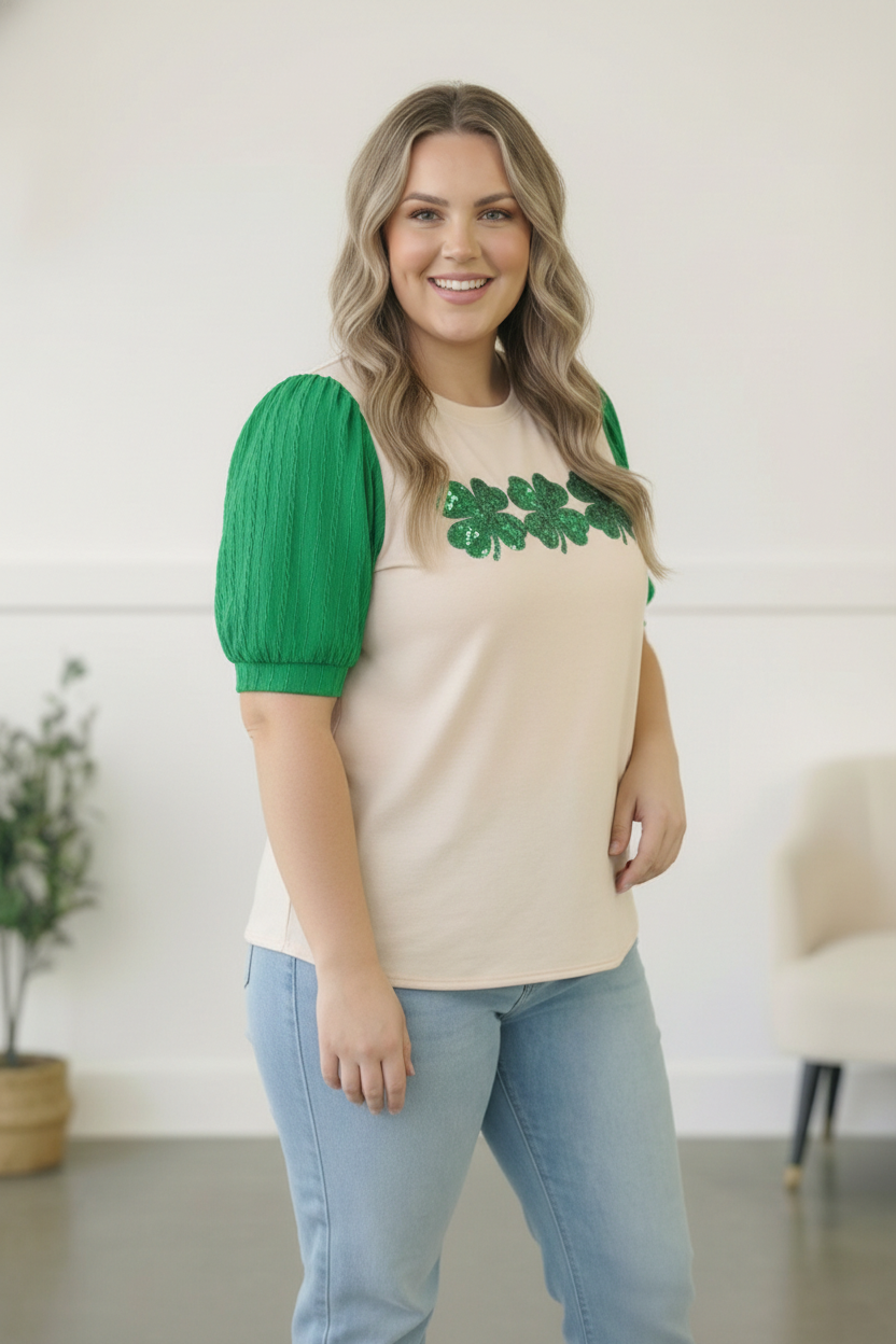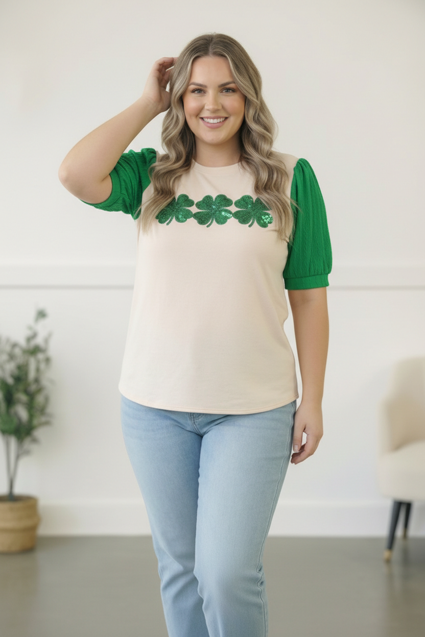 PLUS PUFF BUBBLE COLOR BLOCK WITH CLOVER SEQUINS