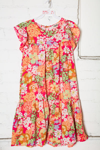 Fuchsia Floral Ruffle Frill Sleeve with Side Pockets